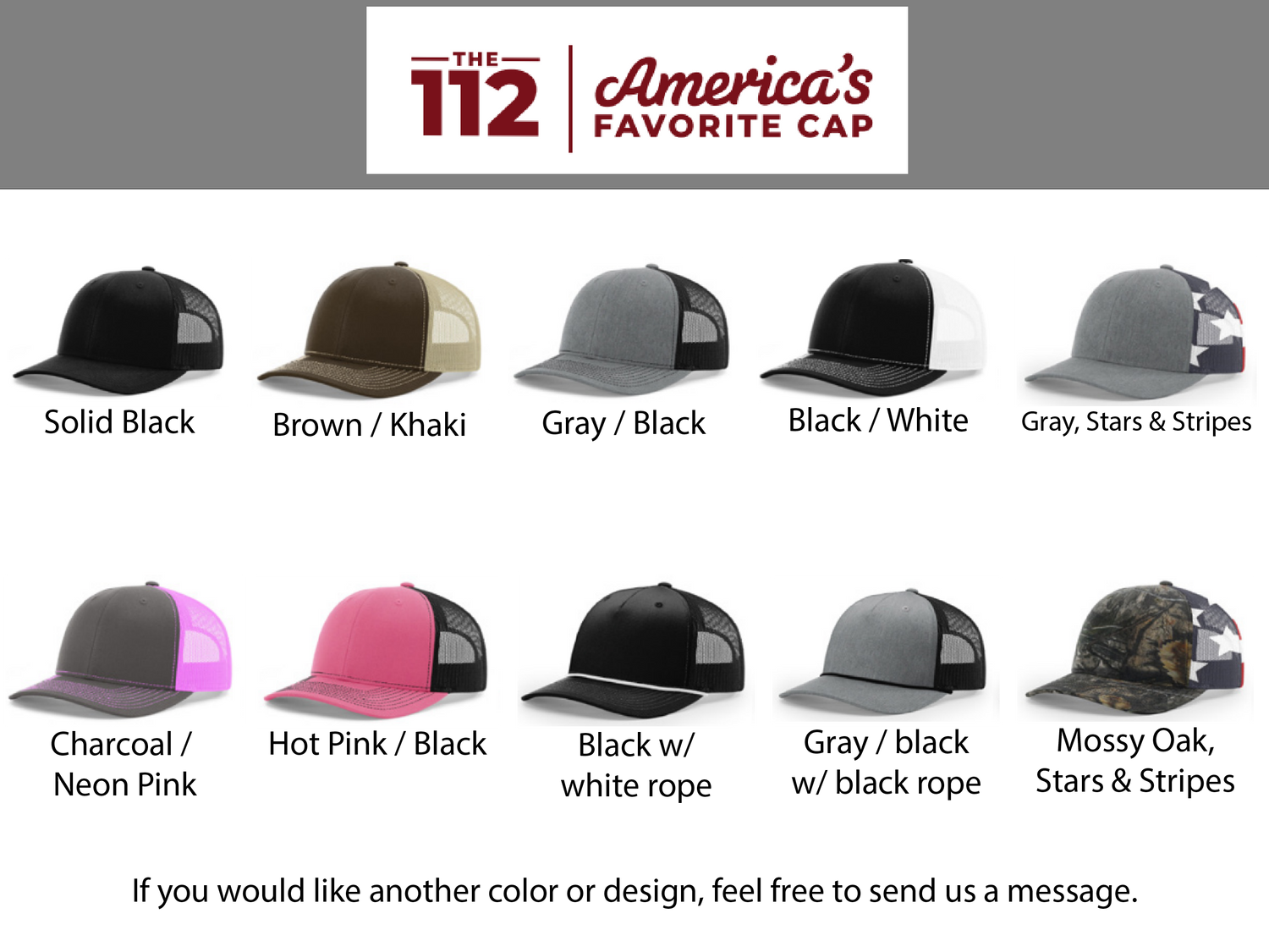 We make high-quality custom hats for events, companies, teams, reunions, and more.