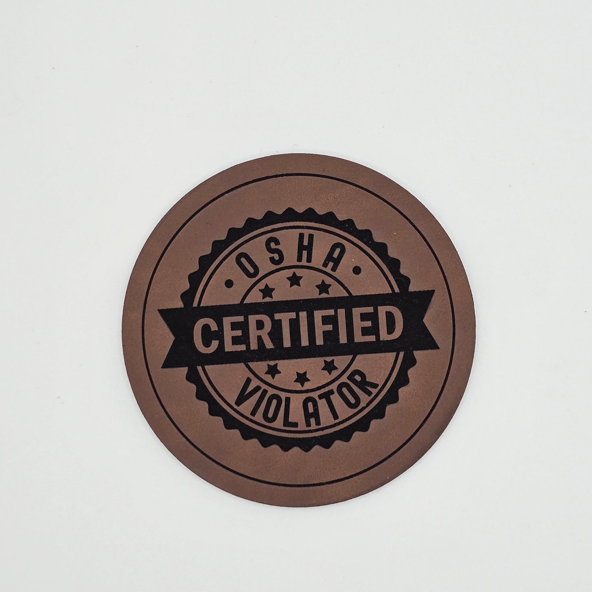 This hat is for the bold, the fearless, and the probably-on-a-first-name-basis-with-HR. Featuring the infamous "OSHA Certified Violator" badge design, this patch is laser engraved on durable faux leather and pressed to your choice of hat style and color.
