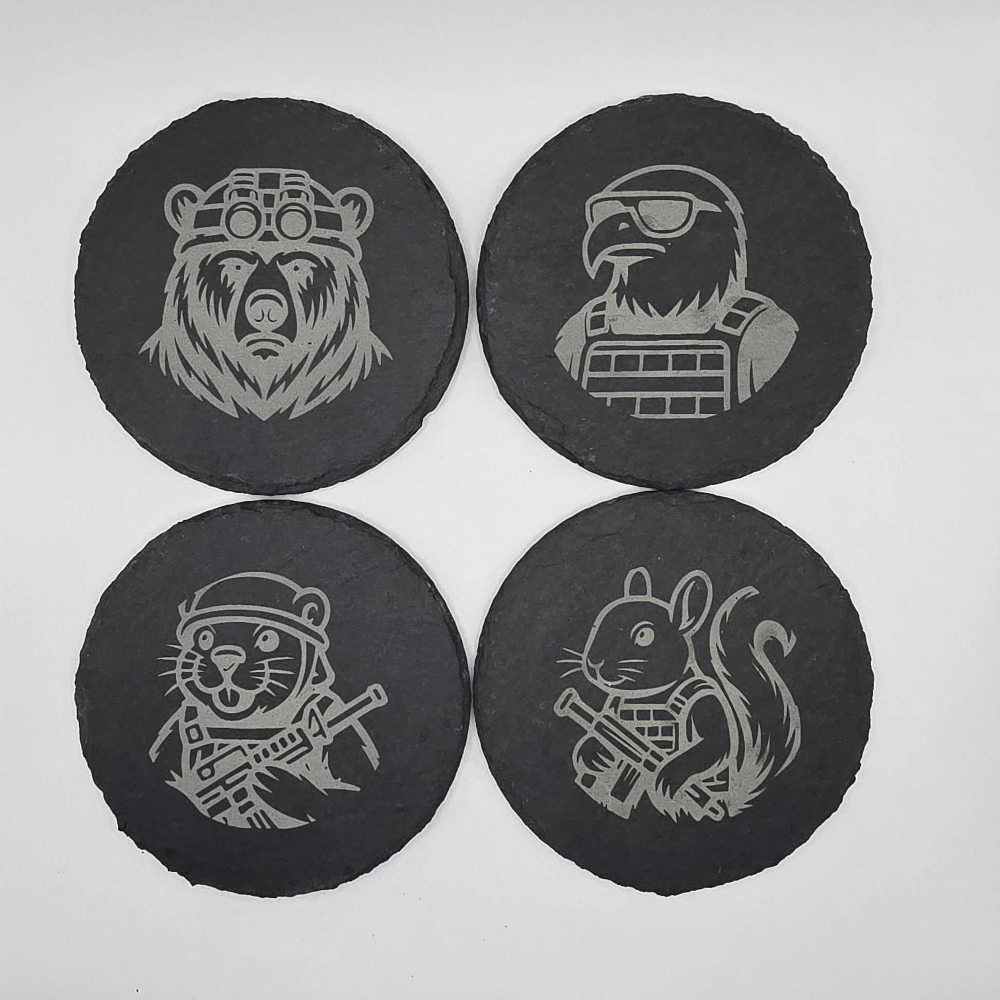 Woodland Militia Coaster Set – Tactical Animal Slate